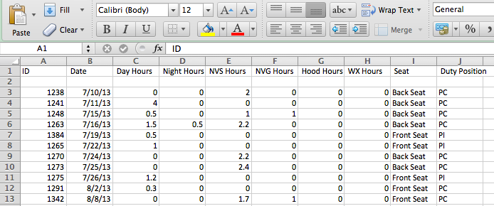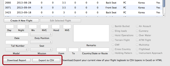 Basically from Date's all the way to seats that are displayed in your logbook view will be downloaded in a report. You can choose to view these in CSV (Comma Separated Value) or you can choose to have it in an HTML file for printing.